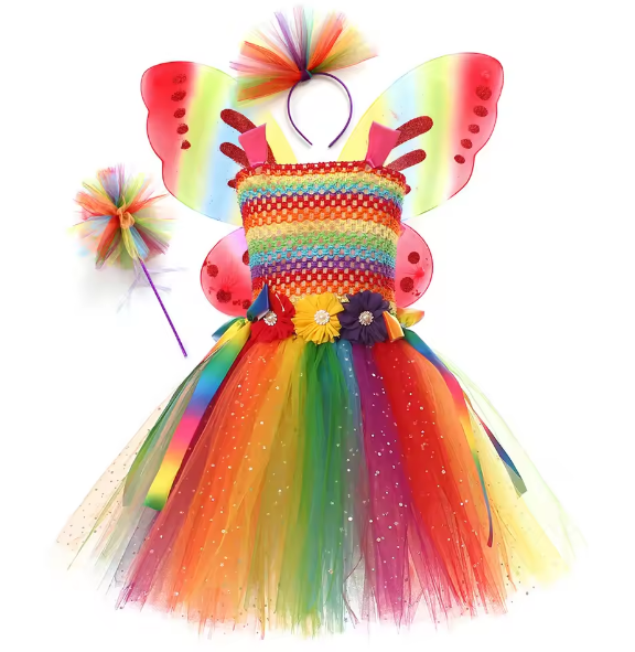 תחפושת קשת בענן לילדות במחיר משתנה בהתאם למידה, צבע וסגנון העיצוב.